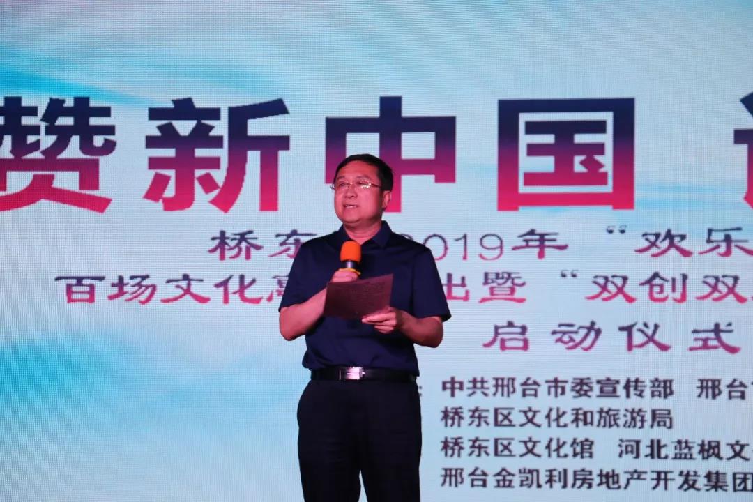 6月14日晚,由中共邢臺(tái)市橋東區(qū)政府、邢臺(tái)市文化和旅游局聯(lián)合主辦的2019年“歡樂(lè)新中國(guó) 謳歌新時(shí)代”百場(chǎng)文化惠民演出暨“雙創(chuàng)雙服”活動(dòng)七進(jìn)演出在金凱利廣場(chǎng)啟動(dòng)。邢臺(tái)橋東區(qū)委副書記申志寶、橋東區(qū)人大副主任施麗萍、橋東區(qū)政府副區(qū)長(zhǎng)劉金紅、橋東區(qū)文化和旅游局局長(zhǎng)左麗華、橋東區(qū)文化和旅游局副局長(zhǎng)蘭永科、河北藍(lán)楓文化傳媒有限公司總經(jīng)理馮永敏、南長(zhǎng)街辦事處、西門里辦事處、祝村鎮(zhèn)辦事處以及金凱利集團(tuán)總裁葛慶達(dá)、總經(jīng)理俞祖放共同出席了本次啟動(dòng)儀式。