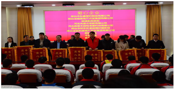 2019年11月23日上午,“大手拉小手 青春助脫貧”公益助學(xué)活動(dòng)在邢臺(tái)臨城中學(xué)報(bào)告廳圓滿舉行。臨城縣委副書(shū)記、共青團(tuán)邢臺(tái)市委書(shū)記、臨城縣政府副縣長(zhǎng)、共青團(tuán)邢臺(tái)市委副書(shū)記、臨城縣教育局局長(zhǎng)、臨城中學(xué)校長(zhǎng)等領(lǐng)導(dǎo)參與了此次助學(xué)活動(dòng),愛(ài)心企業(yè)為50名貧困學(xué)子分別發(fā)放3000元每人的助學(xué)金。