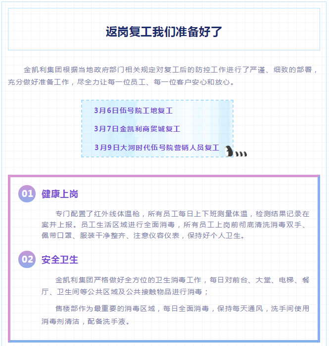 金凱利集團俞祖放總經(jīng)理對復工后的防疫工作進行了嚴謹、細致的部署,做到復工防疫兩不誤。