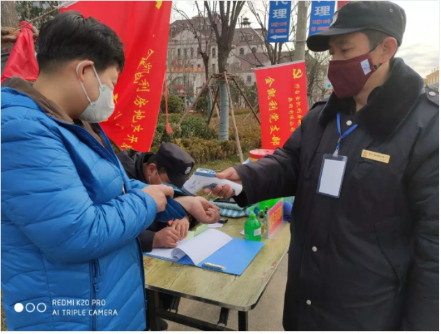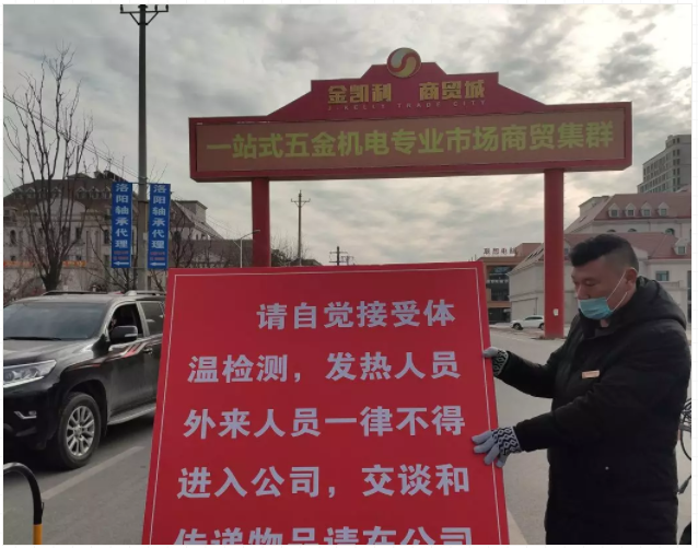 金凱利商貿(mào)城全封閉,只留下正門進出,保安崗位人員24小時在崗,對所有進入金凱利商貿(mào)城人員進行測體溫,消毒服務,并且登記詳細資料。在保證商戶有序復工的情況下,保證廣大商戶和客戶的安全。